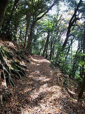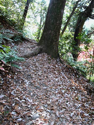 木の根が張りだしている所を歩いたり、