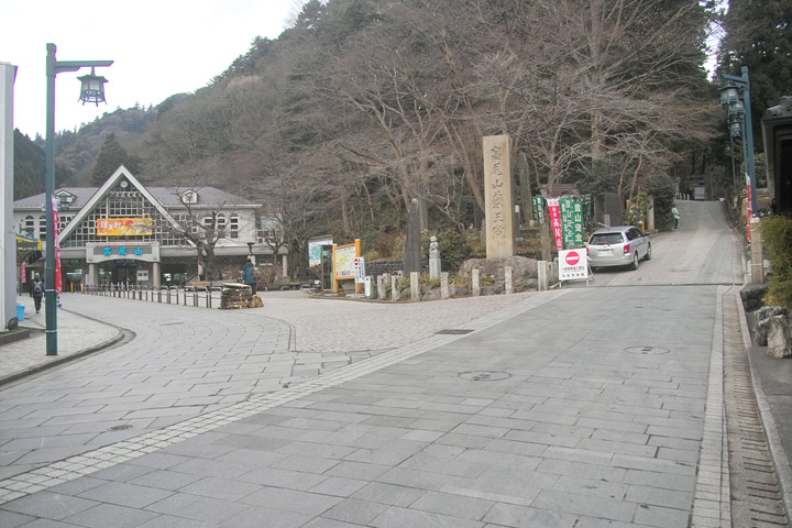 ケーブルカーの高尾山駅(山の上)までの道は、急勾配なので一号路の中で一番厳しいポイント。