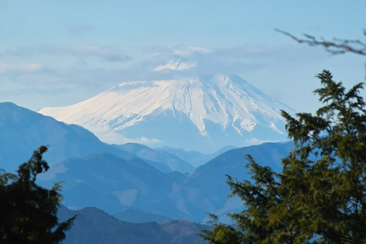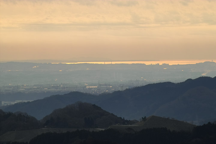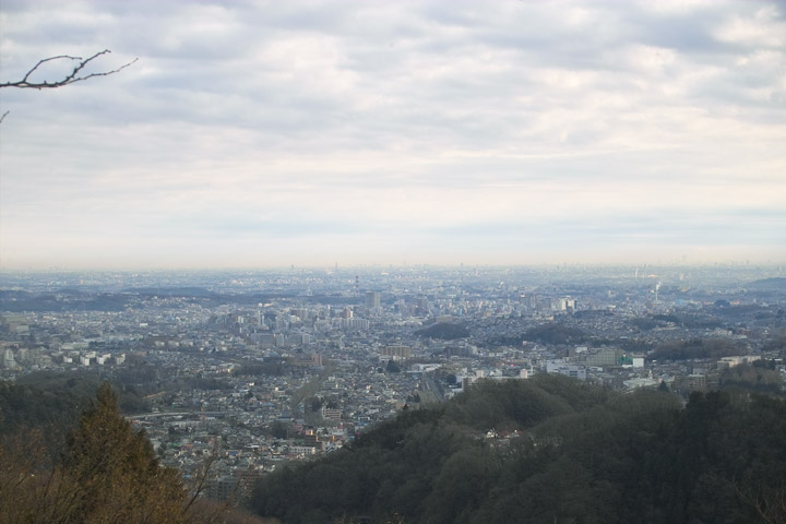 金比羅台からは関東平野が見渡せ、この日は新宿のビル群も見えた。