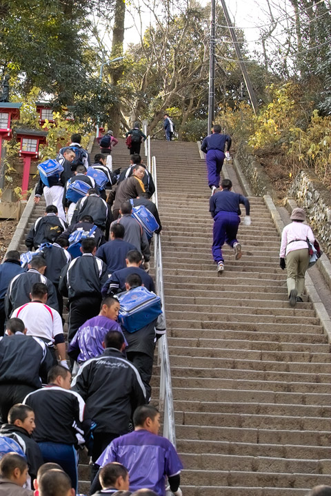 一号路では息だけが上がっていたようで、逆に体も軽く感じ、歩くペースも早くなったが、後ろから学生たちが参道を駆け抜けていく。