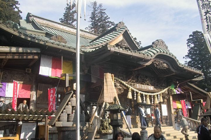 急な階段を上り、仁王門をくぐると薬王院の本堂が現れる。