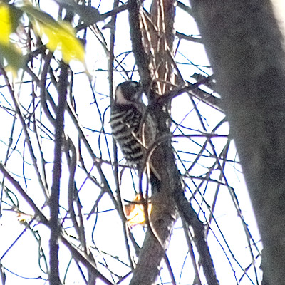 途中、木を突く音が響き、辺りを見渡すと遠くにコゲラが。