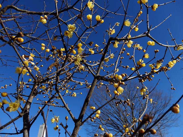 1/13の相模原北公園のロウバイはほぼ満開で、撮影しているとほのかないい香りが漂ってきました。