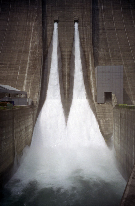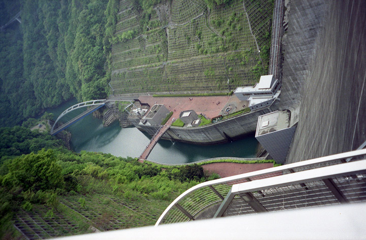 ダムの上には、ダム下に降りるためのエレベーター、ケーブルカーがある。