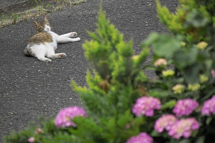 暑い日が続くなか、湿った道路が気持ち良かったのかな?