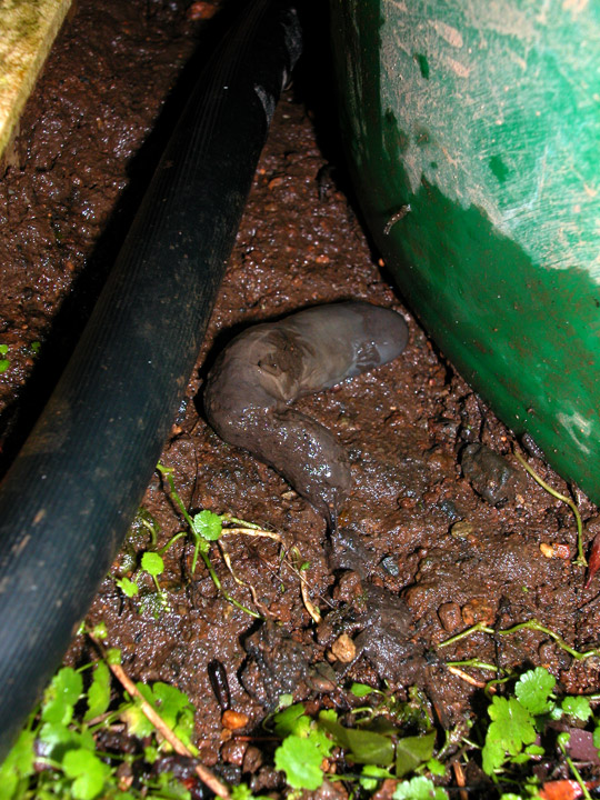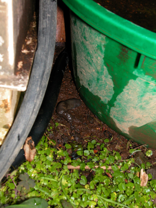 以前、道路に面した水場付近にも同じ大きさのものがあったのだが、まさかカエルがこんな大きな糞をするとは知らず、子犬の糞だと思っていた。