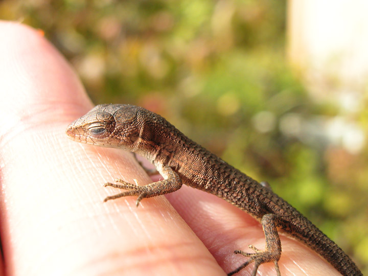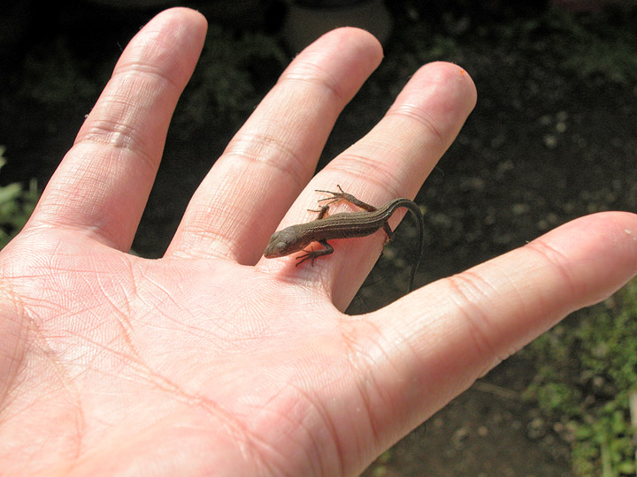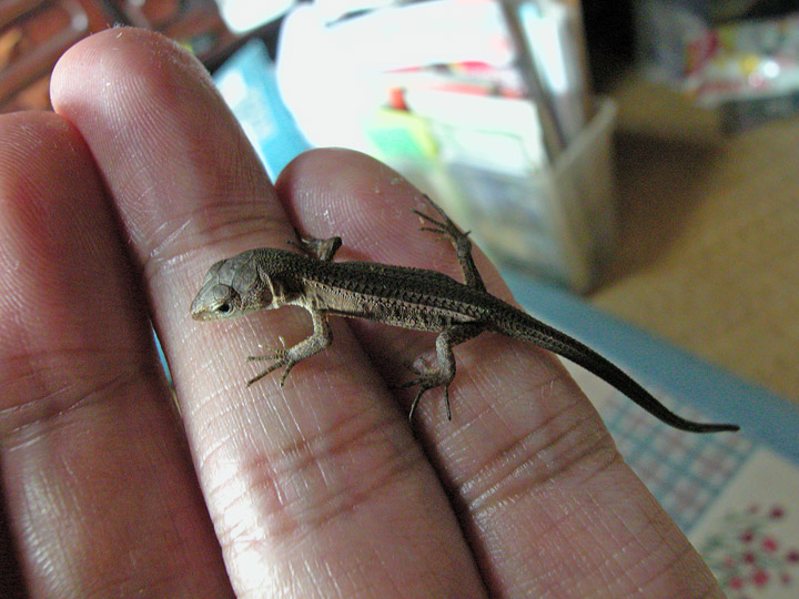 家の中でカナヘビの幼体が歩いているのを見つけた。