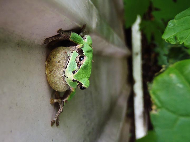 先日見かけて以来、見かけなかったアマガエルが、同じ場所に姿を現した。
