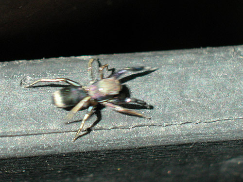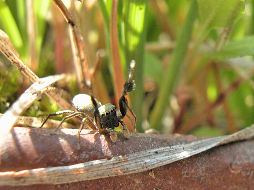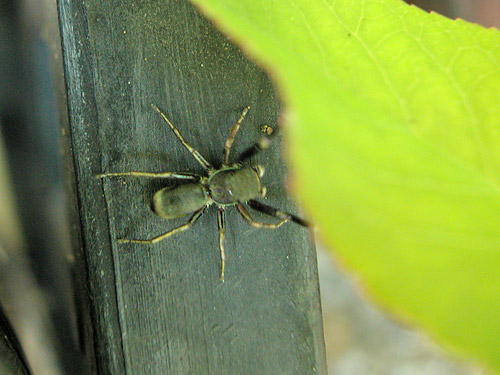 先日のシジュウカラの餌の時、下に置いていた餌袋を取ろうとしたところ、植木鉢のあたりをうごめく小さな物体に目が留まった。