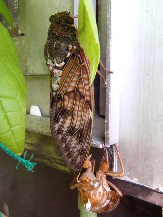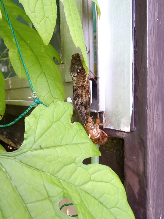 朝起きるとアブラゼミが羽化していた