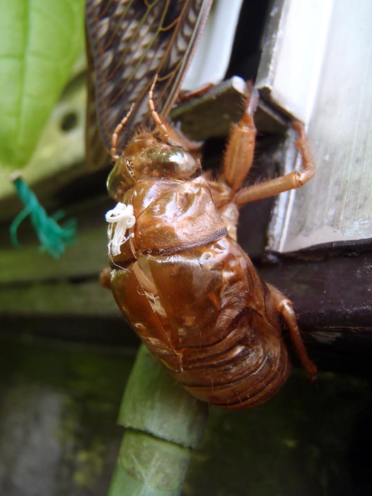もう色が濃くなっているので明け方に羽化したのかもしれない。
