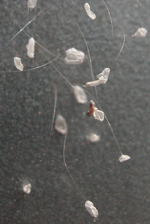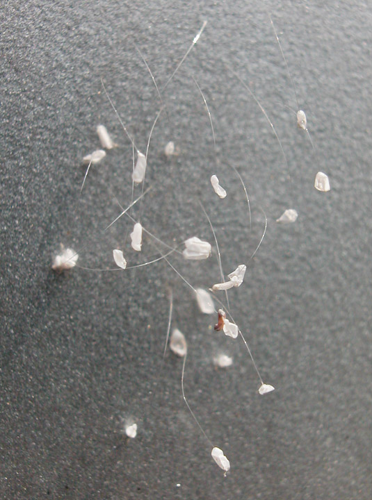 たぶんウスバカゲロウの卵だと思うが、同じような卵で別のカゲロウもいるのではっきりとは分からない。