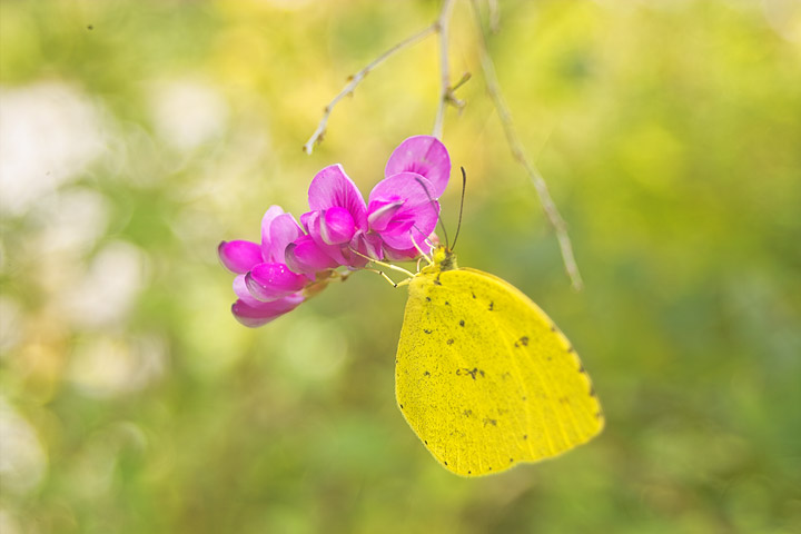 黄色い蝶を見かけるとモンキチョウと思ってしまいがちですが、良く見ると羽に紋がないのでキチョウです。