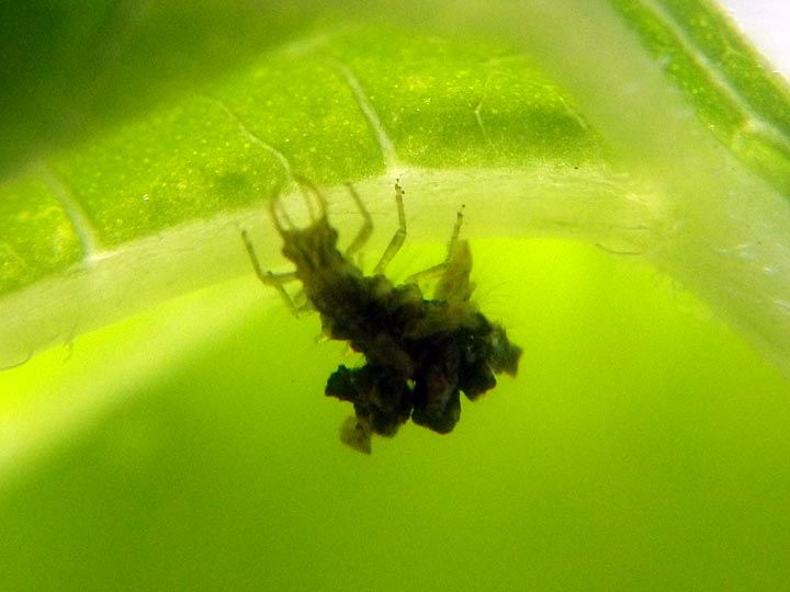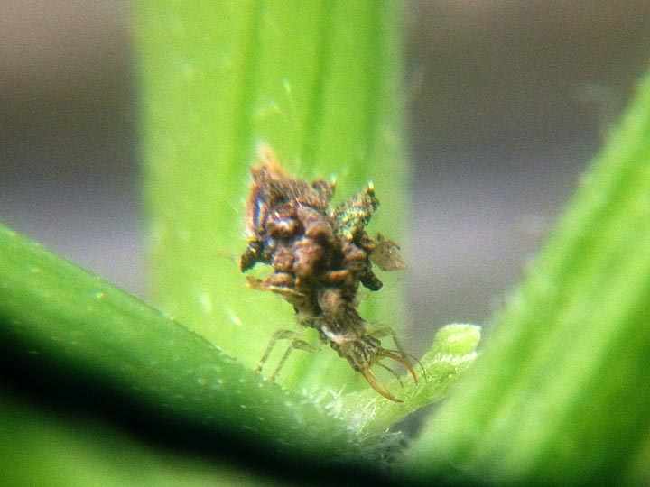 ゴミを背負ったクサカゲロウの幼虫アリマキジゴク