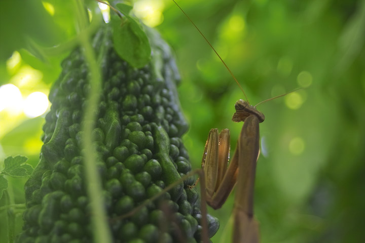 Home > [被写体] 昆虫・クモ > ゴーヤが大好きオオカマキリ