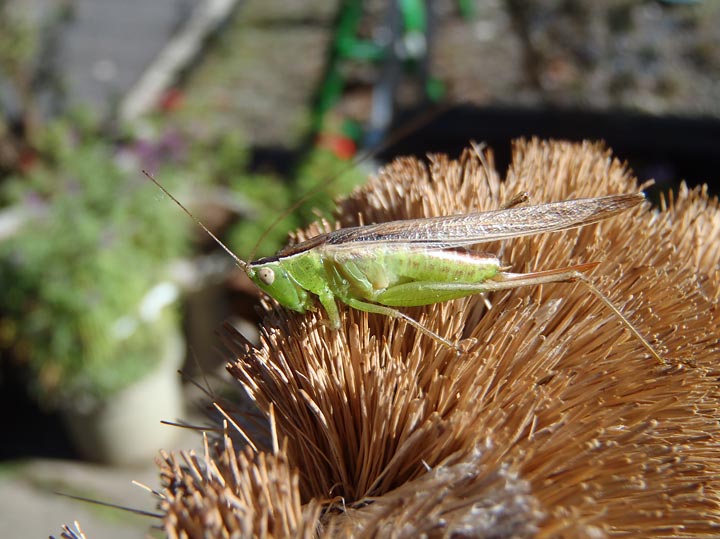 そこで、いつものように撮影してから、ネットで見た目から名前を探すと「ホシササキリ」だと分かった。