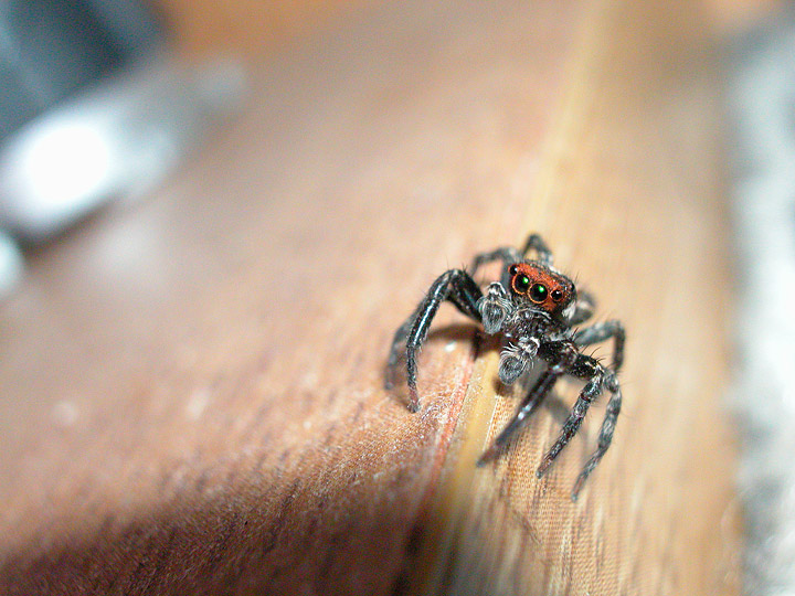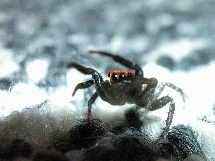 部屋の中をちょくちょくうろついているミスジハエトリグモを撮影した。