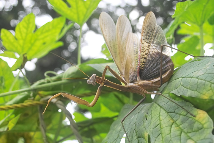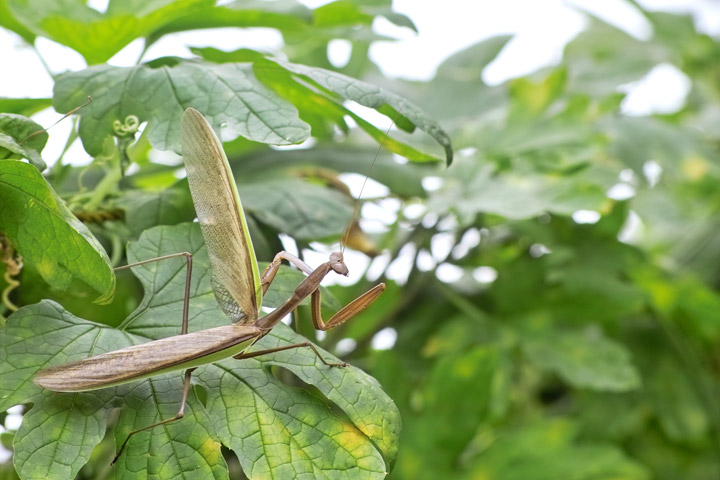 もう一匹は全体が緑色で初めて見るオオカマキリだ。