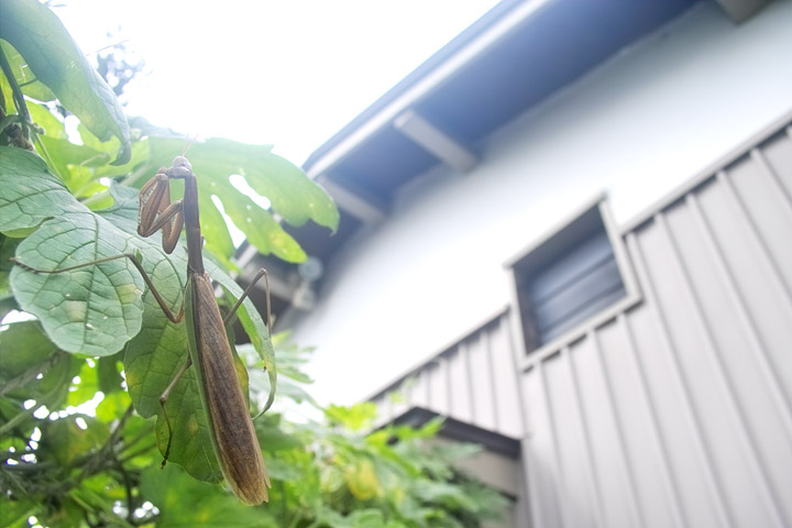 二匹のカマキリはこんな場所にいた。