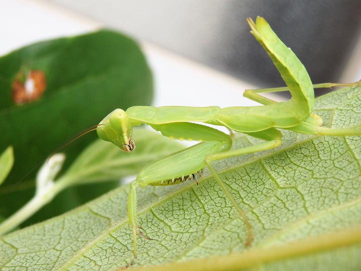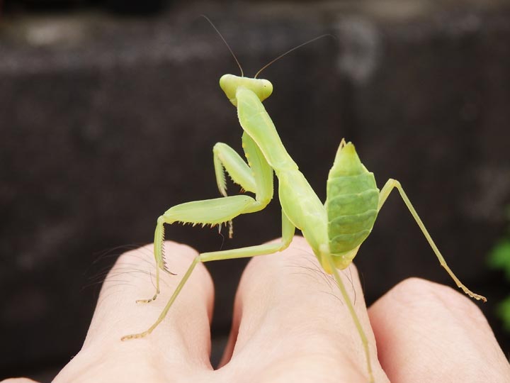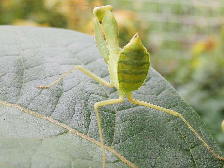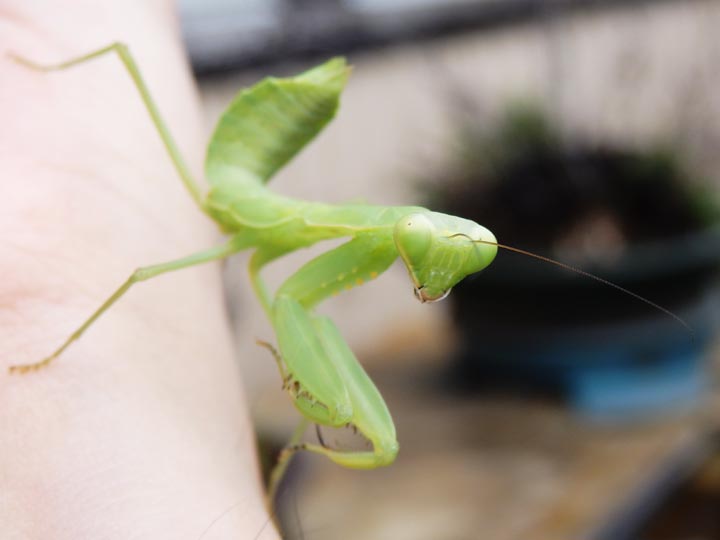 ゴーヤを植えると毎年どこからかカマキリの幼体が現れる。今年もこうやってゴーヤの警備をしてくれている。 pic.twitter.com/24gUsArvHH
