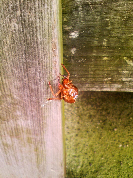 Home > [被写体] 昆虫・クモ > 神社の賽銭箱の足にセミの抜け殻