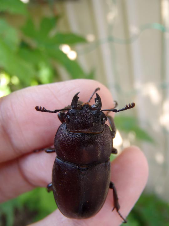 朝、窓を開けるとクワガタが落ちてきた。