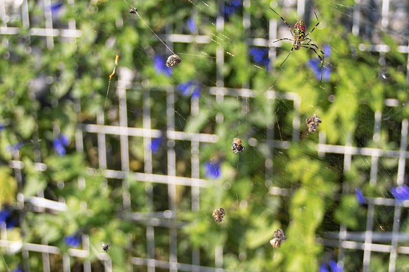この蜘蛛も本能的にここに巣を張ったのか、たまたまなのか絶好の場所を見つけたものです。