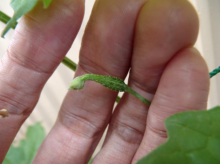 去年までのゴーヤでは、もっと成長しないと雌花のもとがならなかったのですが、これも接ぎ木パワーでしょうか。