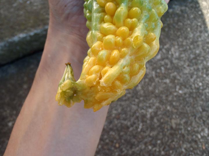 昨日まで緑色だったのに、翌朝見るとゴーヤが黄色くなっていました。