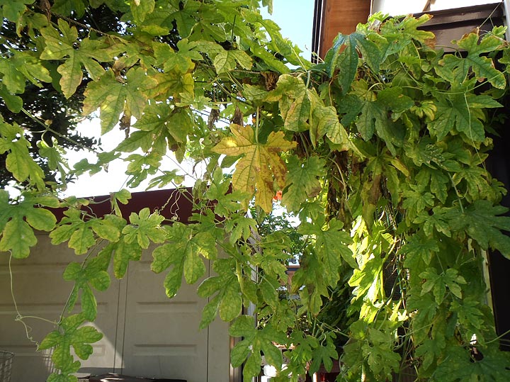 まだ小さいゴーヤが何本か残っていますが、葉の様子からすると、大きくなるかどうか微妙なところ。