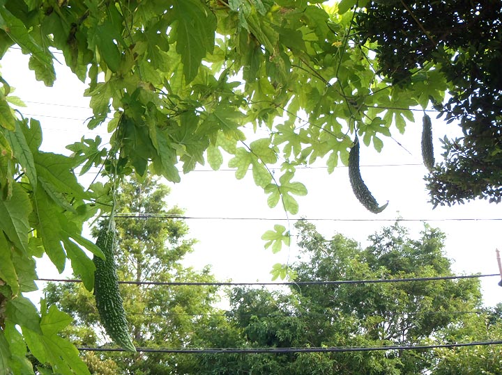 次は一度に10本ほど採れそうなほど、たくさんのゴーヤが実っています。