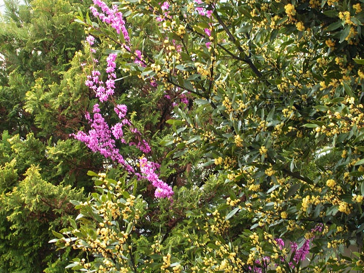 ピンク色の花は何だか知らないが、これもまた黄色い花との組み合わせが鮮やかで、目を楽しませてくれる。