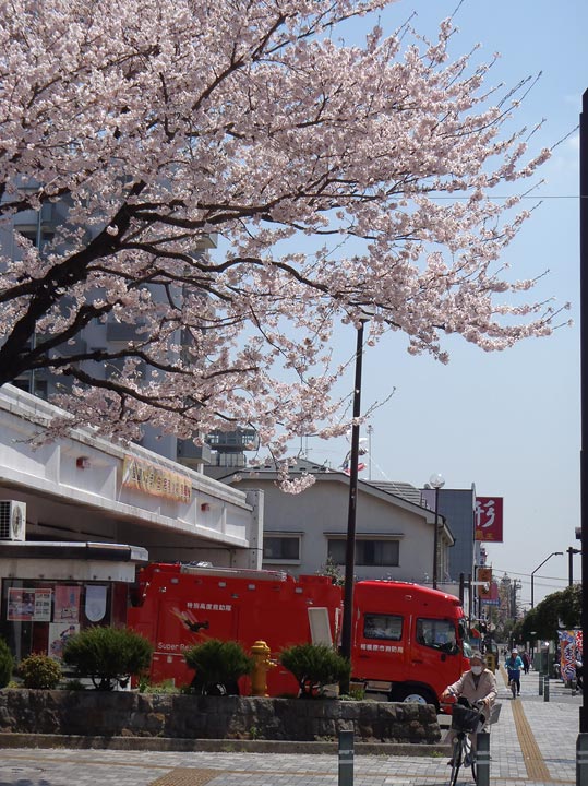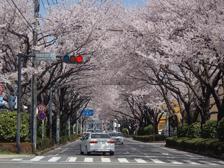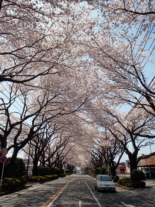 市役所前通りから一本西にある通り、消防署横の桜のトンネル。