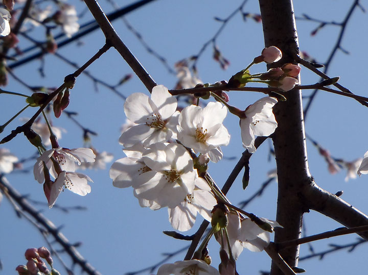日が当たっていると桜の開花は進むようで、この桜はかなり花が開いていました。