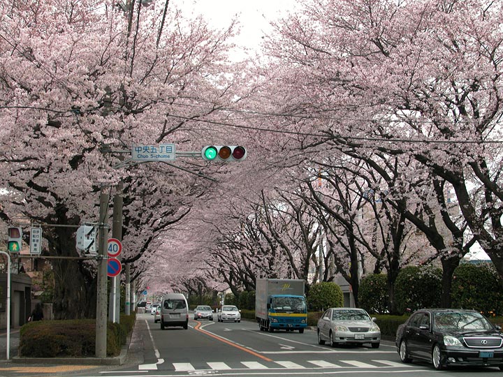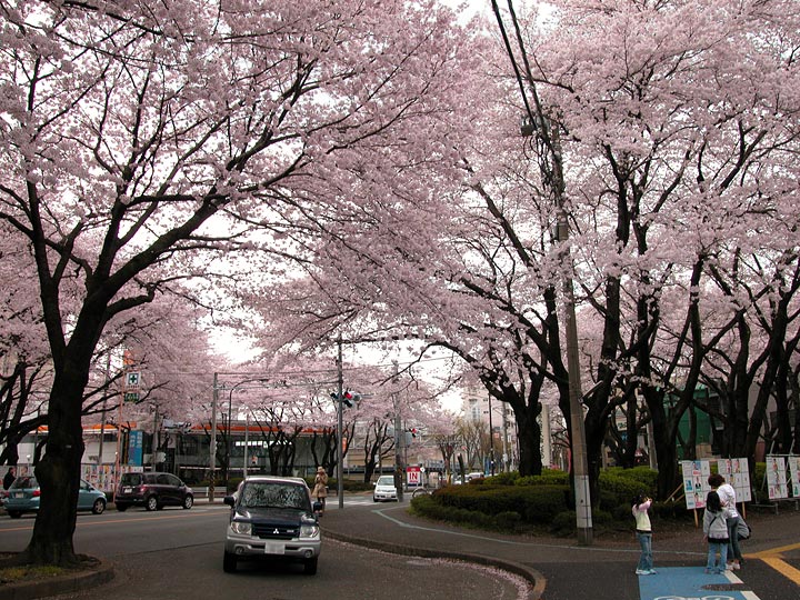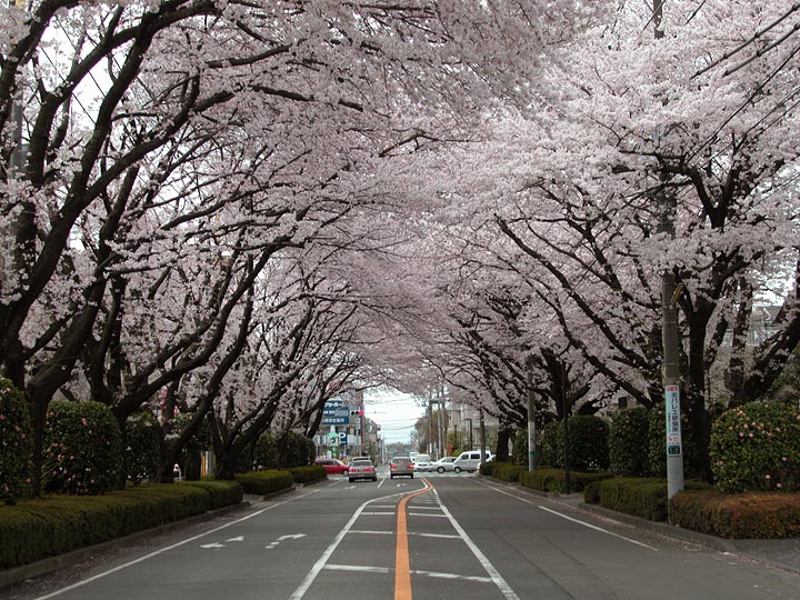 2011年4月10日、相模原市役所近辺の桜並木が満開。青空でなかったのが残念。