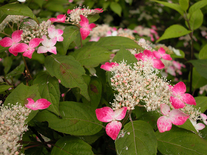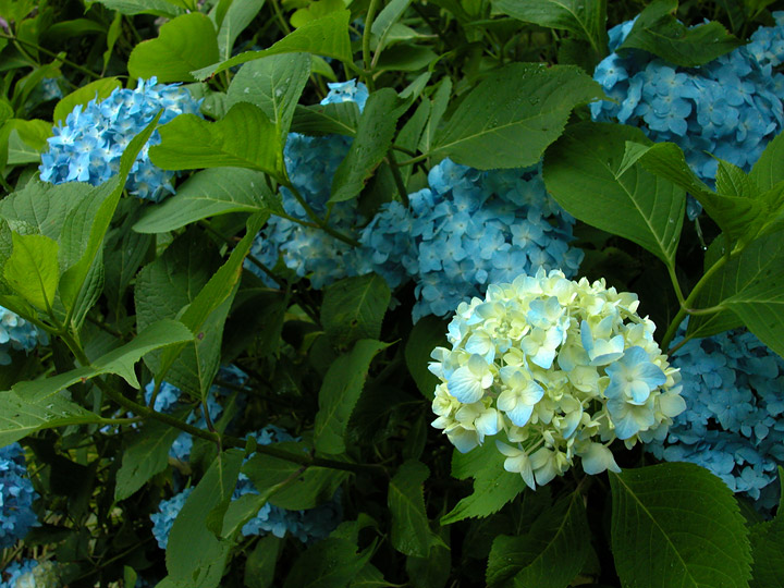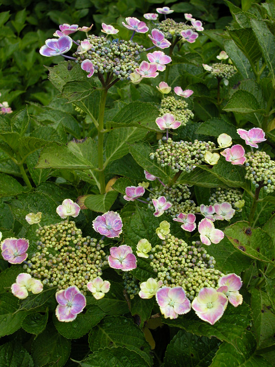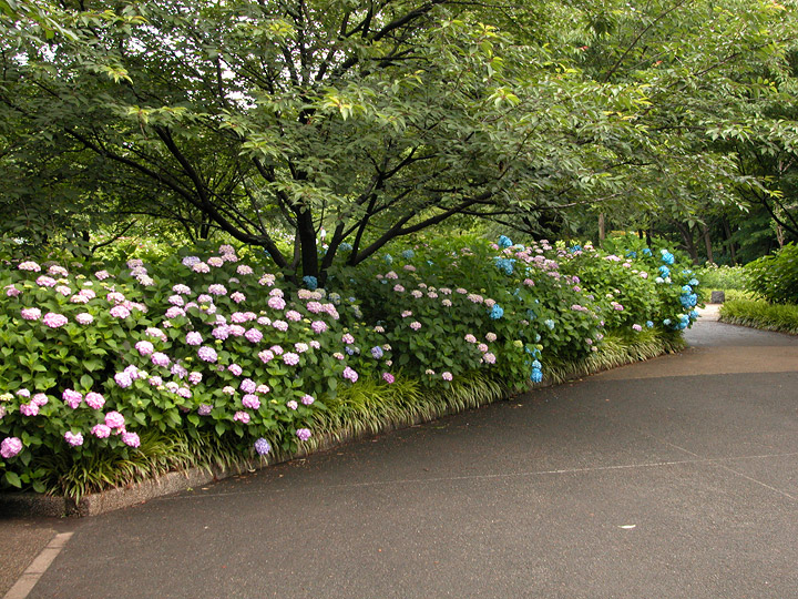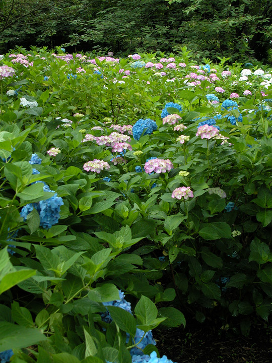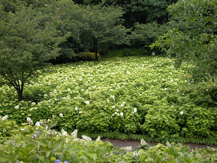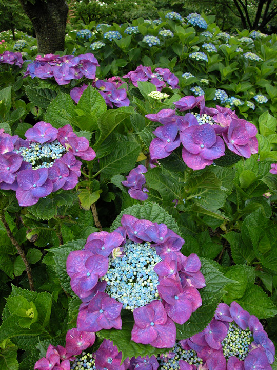 先週9日では、早咲きのアジサイがちらほら咲いていた程度だったが、10日経ってみると7分咲きほどとなっていた。