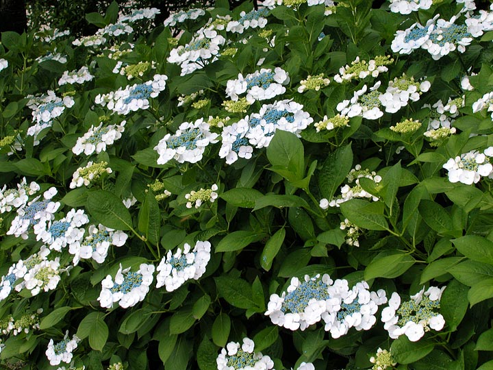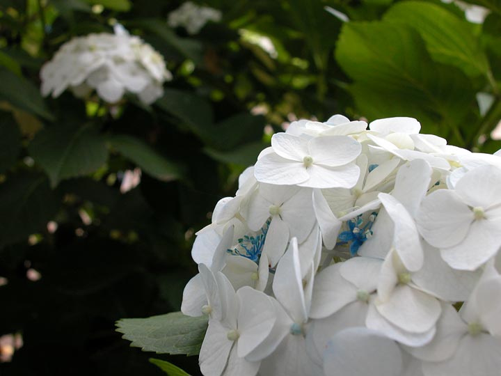 玉のように開いた白いガクの間から、青い花が見えるきれいなアジサイでした。