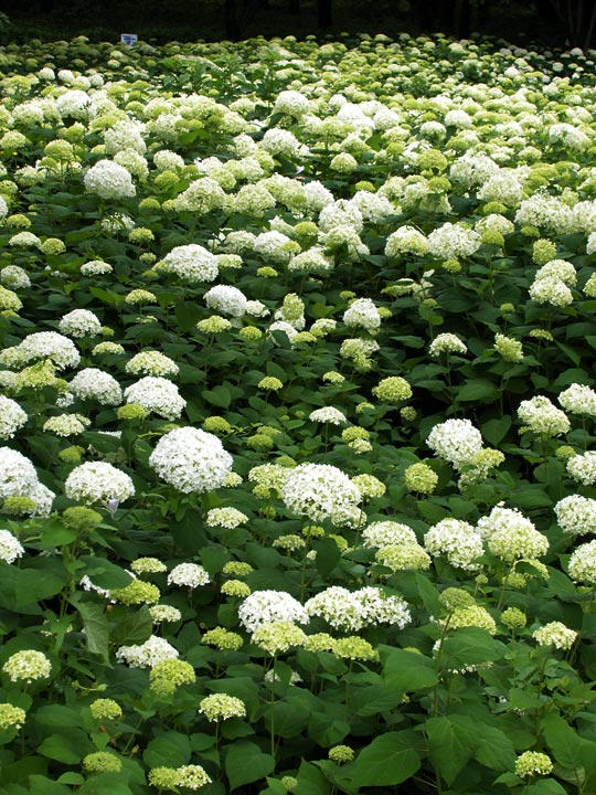 アジサイ園北側に広がる薄緑色のアジサイ郡は圧巻。