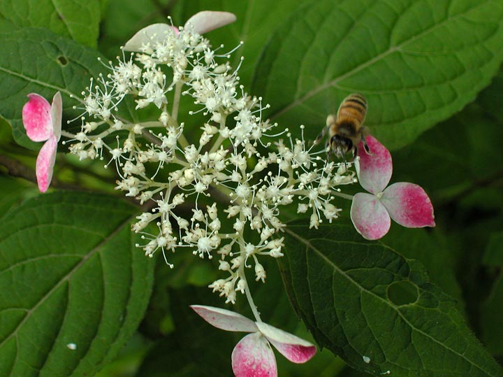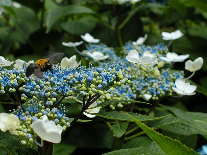 アジサイの花粉を集めるクマバチ。
