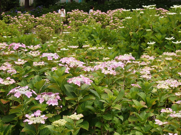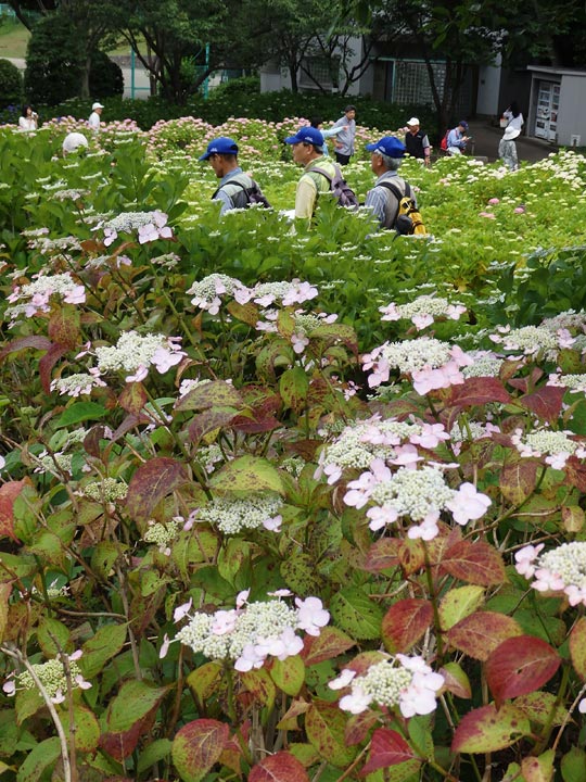 休日ということもあり、多くの人がアジサイを見に来ていました。
