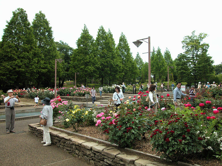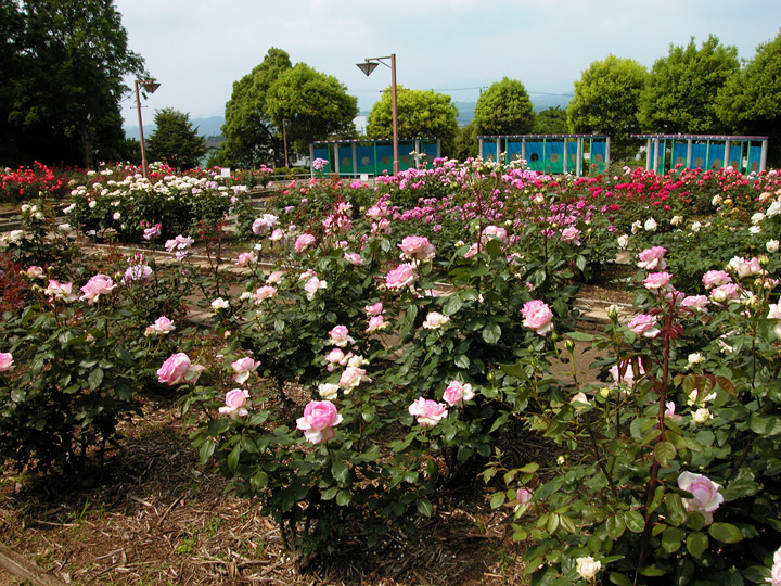 相模原北公園にあるバラエリアは二つに分かれており、今回公開している写真は、水が流れている階段に設置してあるバラの花壇です。