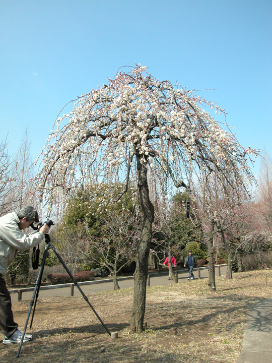 白い花の梅は満開に近い状態ですが、赤い花の木はまだツボミが多く満開にもう少しかかりそう。