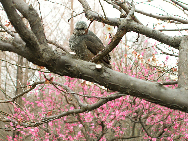 相模原北公園の梅とヒヨドリ