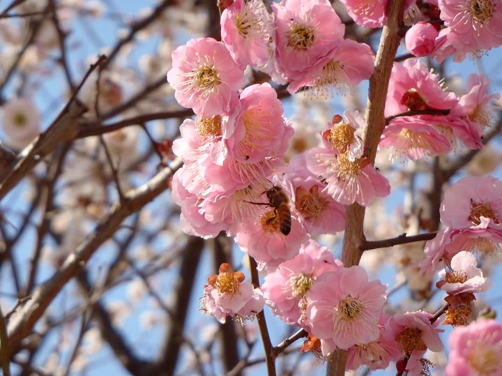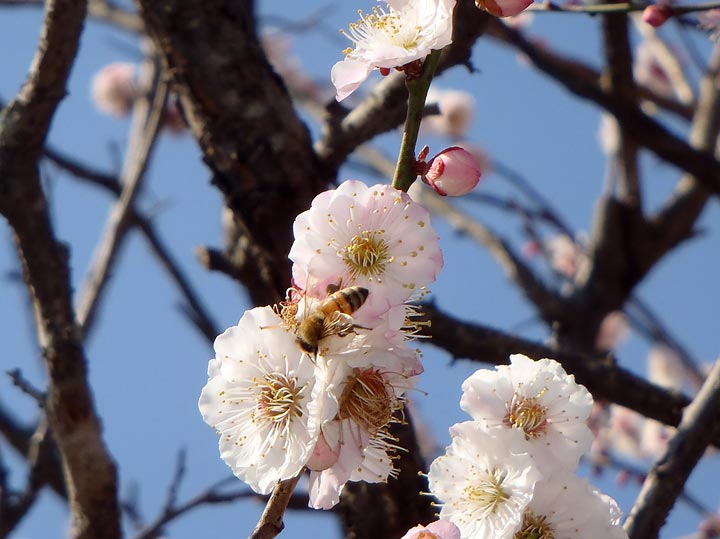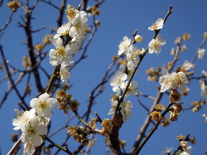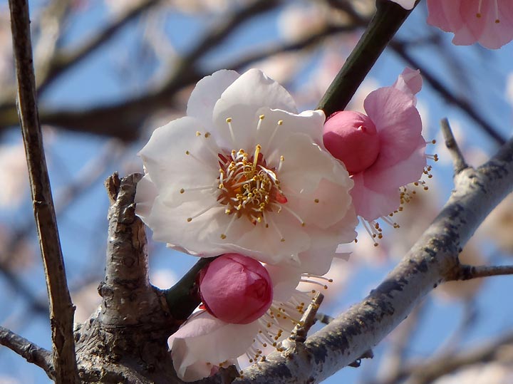 公園内の梅はもう終わっているかと思いましたが、遅咲きの梅が満開で、見頃より見劣りするものの、充分楽しめるほど花が咲いていました。