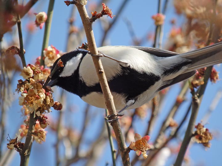 咲き終わった梅の花をシジュウカラが食べに来ていた。