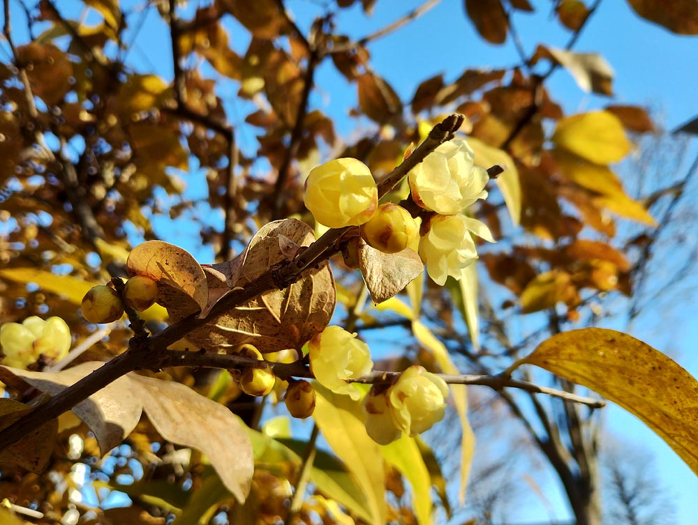 今年はロウバイの葉がたくさん残っており、新鮮だった。