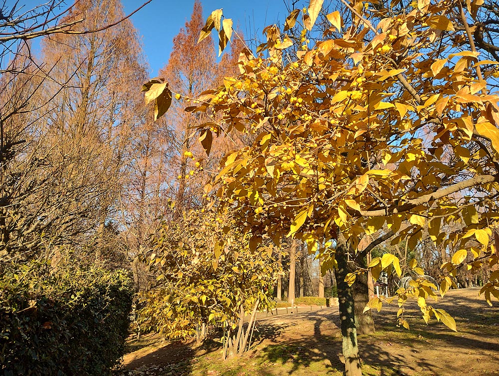ロウバイの木は梅園内に1本と、となりの遊具広場エリアの梅園寄りに数本植えてある。