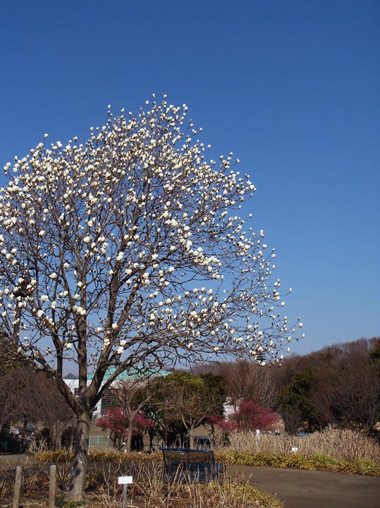 相模原北公園で、梅の他に咲いているめぼしい花は、桜とハクモクレンです。