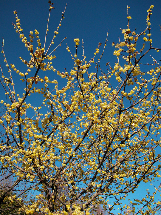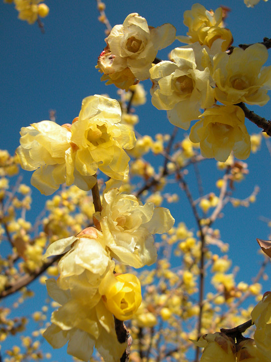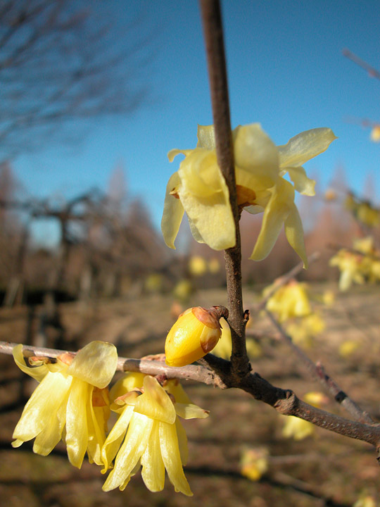 近づくと独特の香りがし、透明感のある花びらと共に、蝋梅を楽しむことができる。