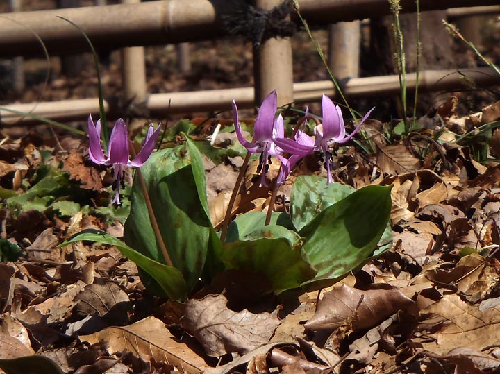 柵からカタクリの花までの距離が遠いので、ズームを使って撮影しました。